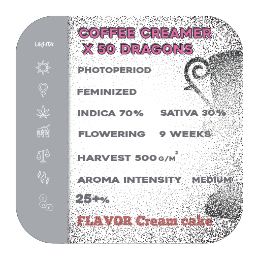 Coffee Creamer x 50 Dragons is a medium-yielding hybrid, ideal for growers focused on resin quality, terpene expression, and extract-focused cultivation rather than just bulk production.